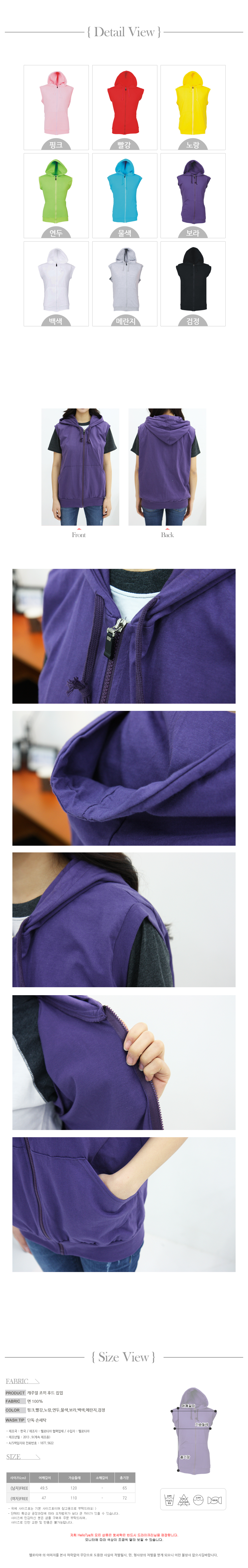 캐주얼 조끼 집업후드