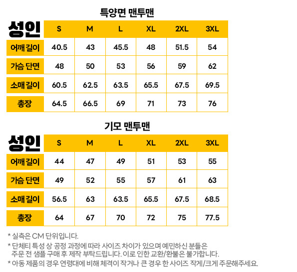 특양면 생지 맨투맨 (특양면/기모)